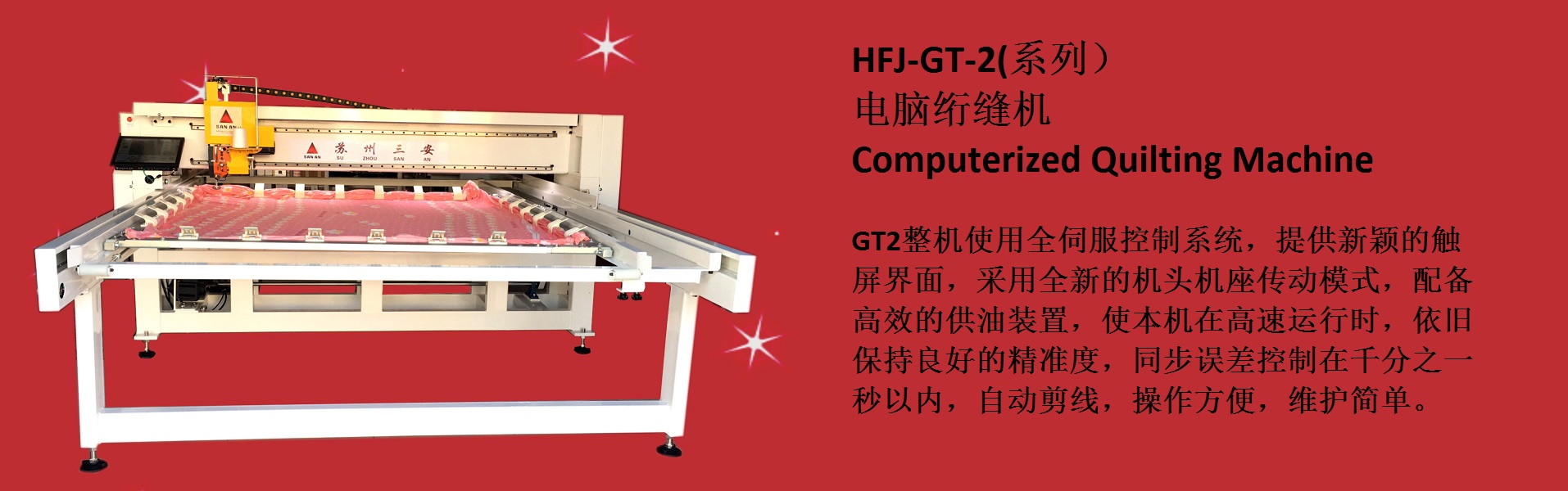 蘇州三安機(jī)器制造有限公司座落在風(fēng)景秀麗有“人間天堂”美譽(yù)的蘇州。太湖湖畔。是一家專(zhuān)業(yè)開(kāi)發(fā)設(shè)計(jì)、制造、銷(xiāo)售服務(wù)于一體的高科技企業(yè),我們專(zhuān)業(yè)制造電腦絎縫機(jī),縫墊機(jī),模板機(jī)等紡織設(shè)備。銷(xiāo)售市場(chǎng)覆蓋了中國(guó)大部分地區(qū).并遠(yuǎn)銷(xiāo)澳洲、俄羅斯、中東以及東南亞...